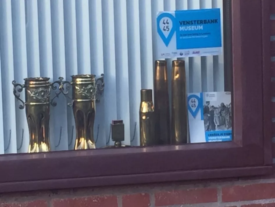 In het Vensterbankmuseum van Dia Eussen staan hulzen en de asbak met de initialen van mijn moeder, die mijn vader gemaakt heeft. Apart zijn ook de vier muntjes van 21/2 cent die mijn vader 'lebsjke' noemde. Mijn vader stopte ze in mijn moeders jaszak 'als een zoen' voordat hij naar de Staatsmijn Maurits ging om te werken.